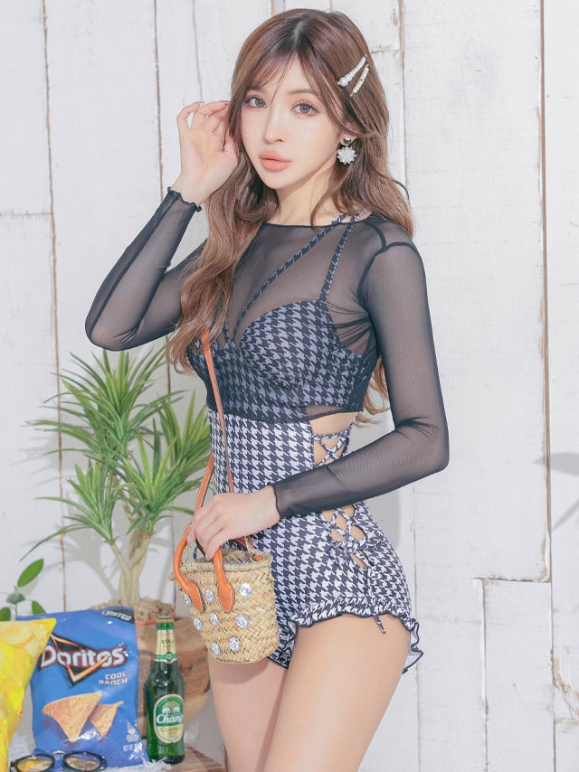 親子で可愛く目立てちゃう♪ [水着] オープンバック3Dフリルデザインモノキニビキニ