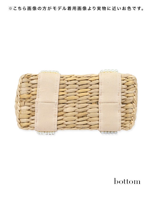 持つだけで映える♪ [水着小物] ビキニにぴったり!ゴールドチェーン&パールチェーン付きラウンドかごバッグ