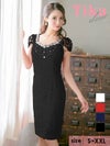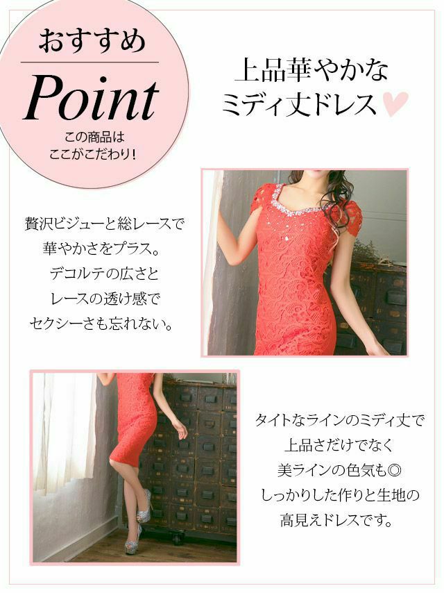 3. クロッシェレース 半袖 タイト膝丈ドレス (Sサイズ~XXLサイズ) (益田杏奈/キャバドレス着用)