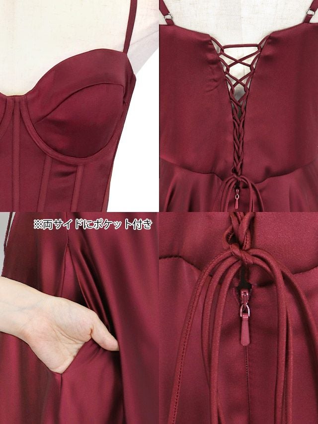 キャミソール ハートカット サテン ワンカラー スリット Aラインロングドレスのイメージ画像3