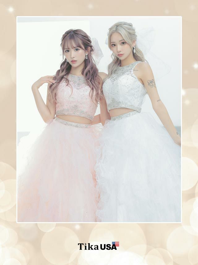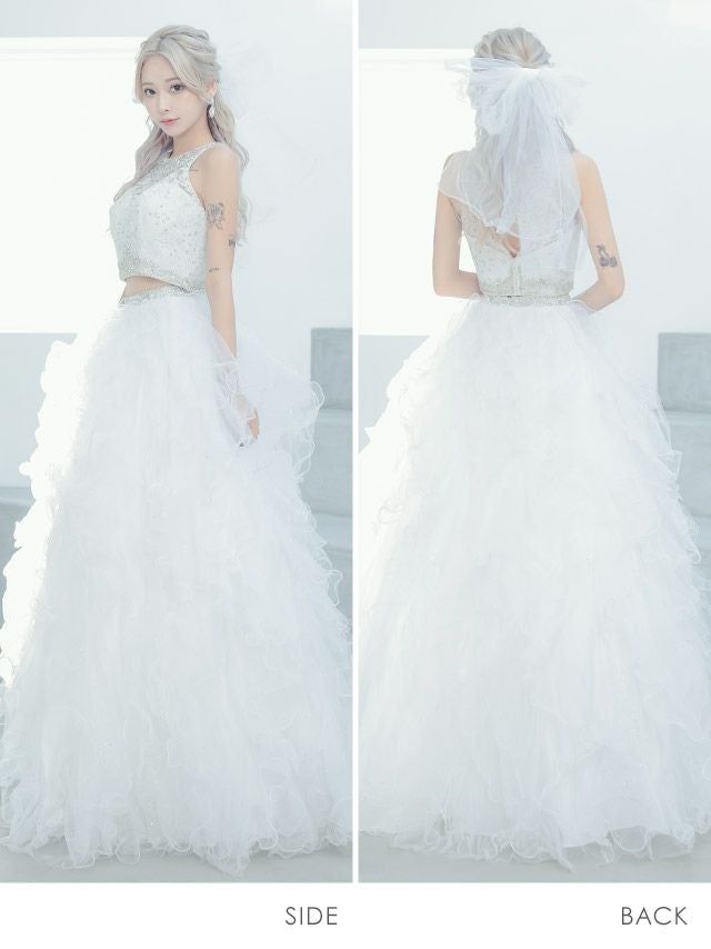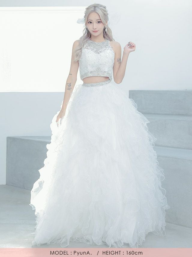 4. [LA直輸入] キラキラビジュー付きセットアップゴージャスラメふんわりチュールAラインロングドレス (XXSサイズ~Mサイズ) (PyunA./キャバドレス着用)