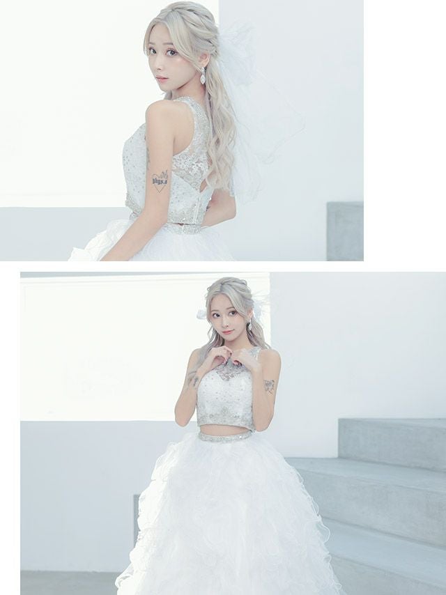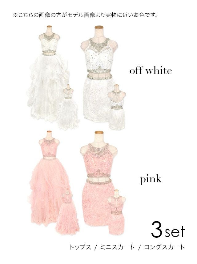 3. [LA直輸入] キラキラビジュー付きセットアップゴージャスラメふんわりチュールAラインロングドレス (XXSサイズ~Mサイズ) (PyunA./キャバドレス着用)