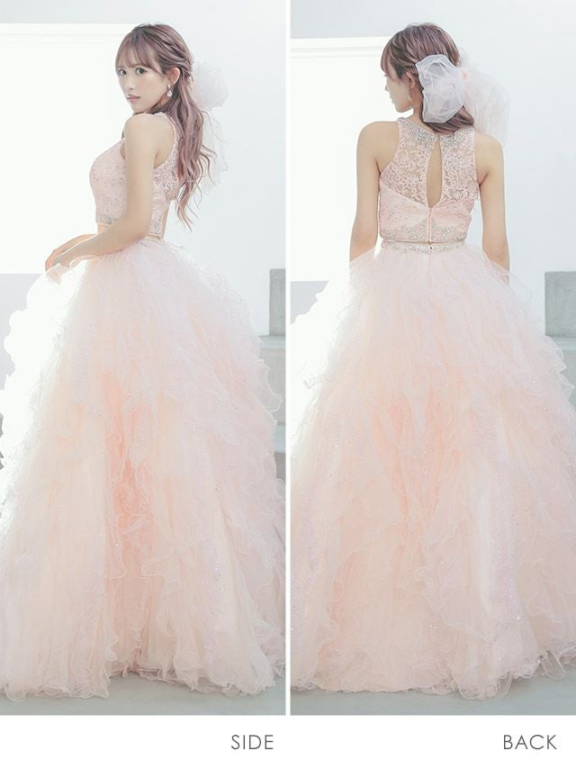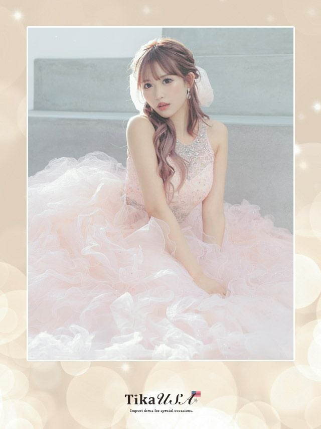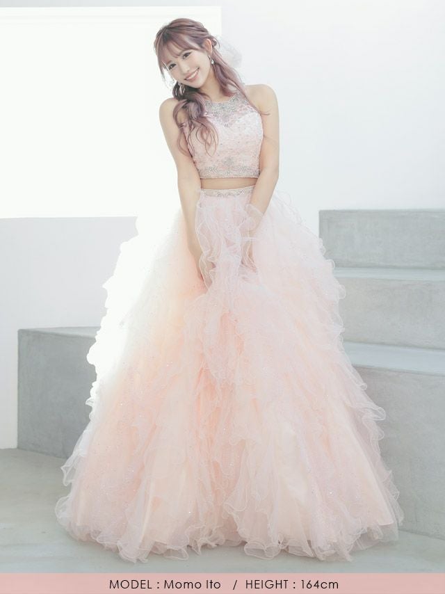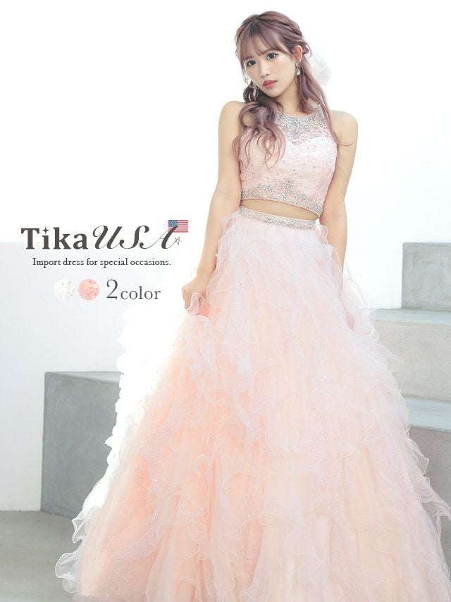 360度どこから見てもリアルプリンセス♪ [LA直輸入] キラキラビジュー付きセットアップゴージャスラメふんわりチュールAラインロングドレス (XXSサイズ~Mサイズ) (PyunA./キャバドレス着用)