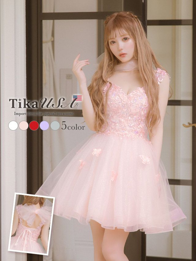 [LA直輸入] バースデー スパンコール バタフライ 刺繍 キャミソール チュール フレアミニドレス (XSサイズ/Sサイズ) (聖菜 れいぽよ/キャバドレス着用)