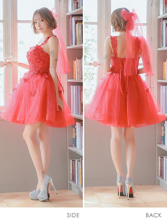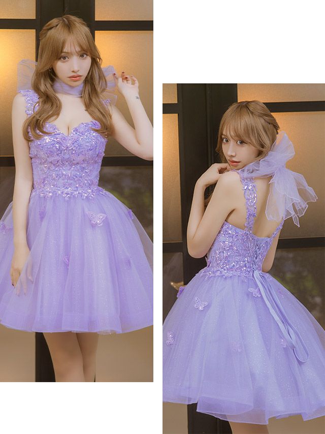[LA直輸入] バースデー バタフライモチーフ スパンコール刺繍 バックスピンドル キャミソール ボリュームラメ フレアミニドレス (XSサイズ/Sサイズ) (重川茉弥/キャバドレス着用)