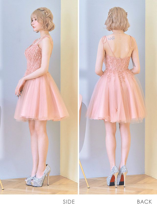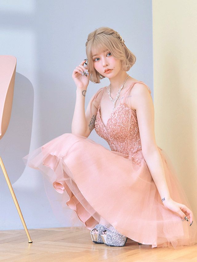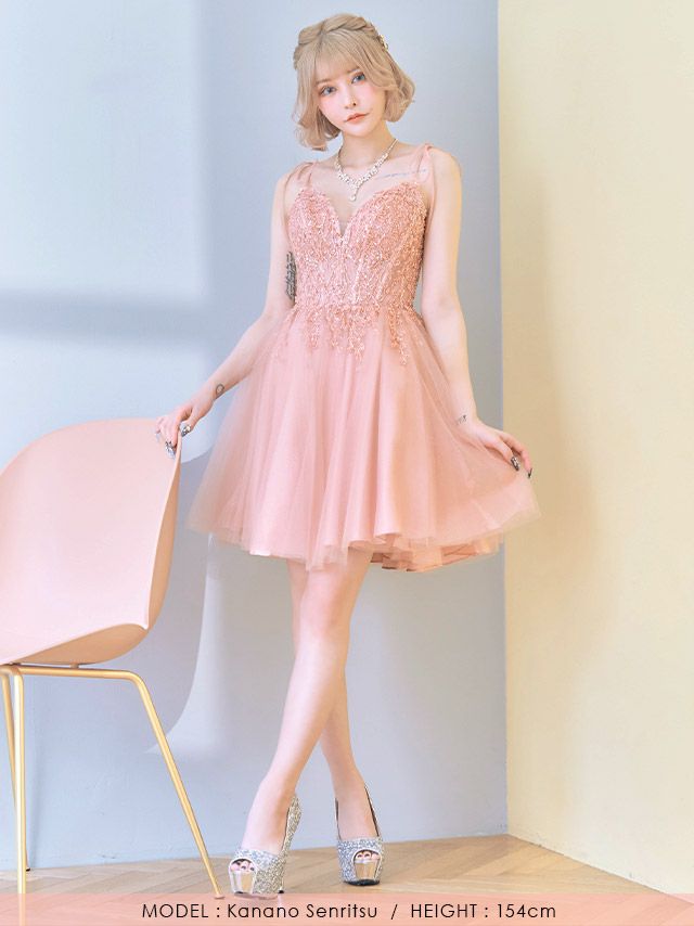 5. [LA直輸入] キャミソールリボン刺繍ビジュー切り替えフレアミニドレス (XSサイズ~Lサイズ) (橋本梨菜/キャバドレス着用)