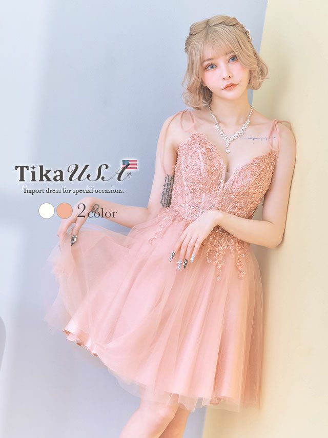 LA直輸入 キャミソールリボン刺繍ビジュー切り替えフレアミニバースデードレス (XSサイズ~Lサイズ) (橋本梨菜 キャバドレス着用)