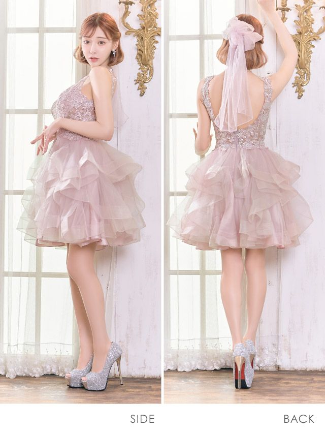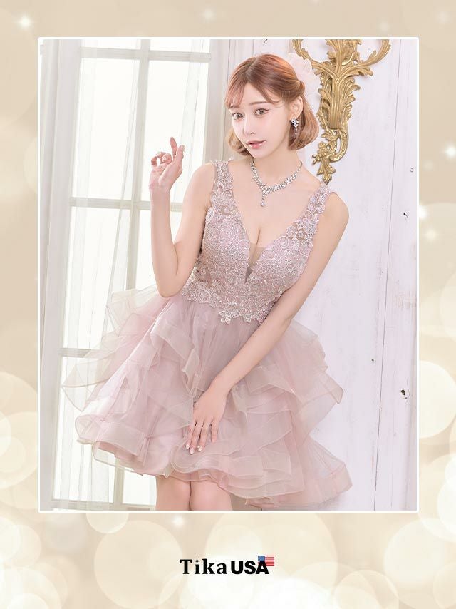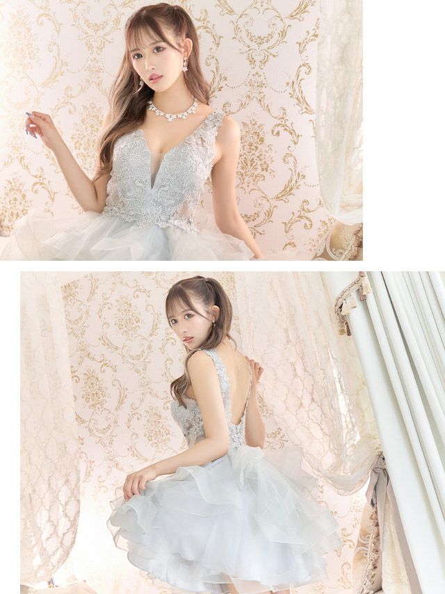 4. [LA直輸入] エアリー刺繍レース×ビジューチュールAラインミニドレス (XSサイズ~Mサイズ) (明日花キララ/キャバドレス着用)