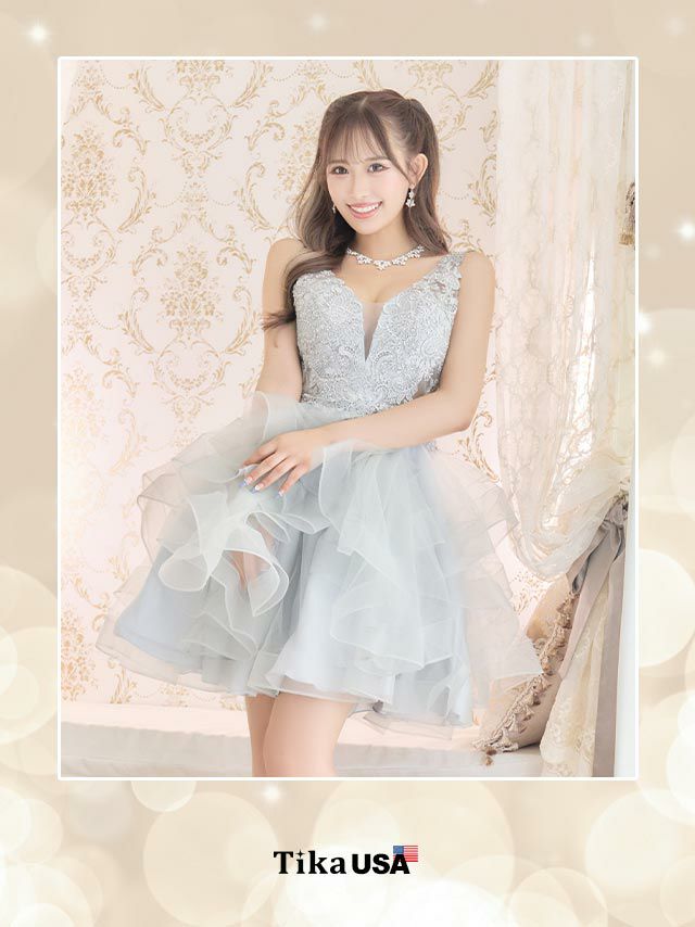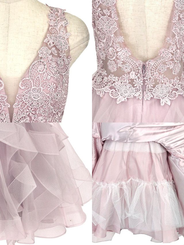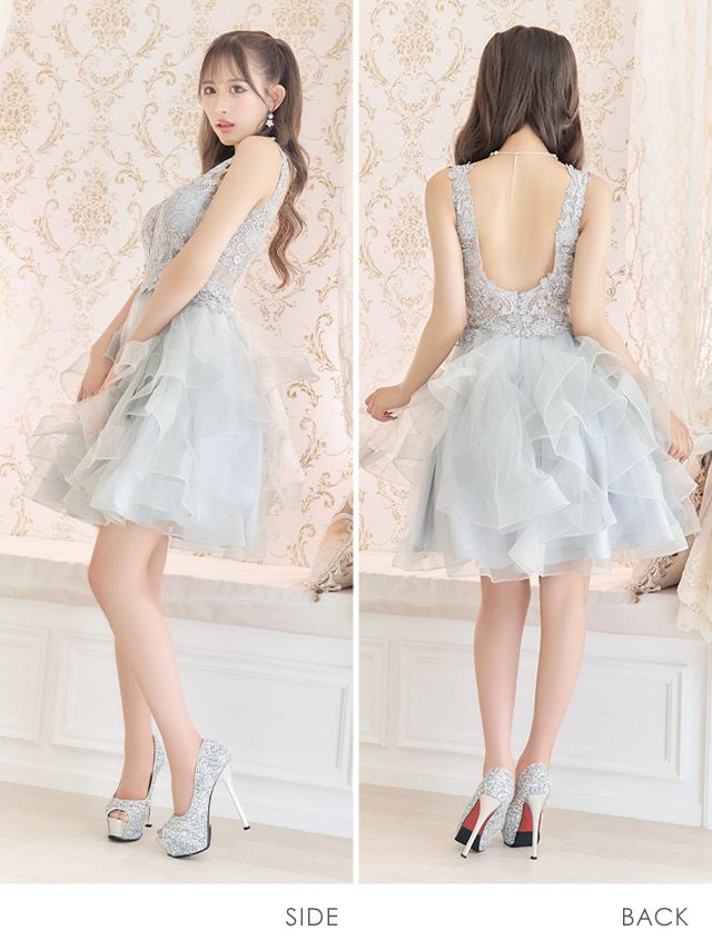 LA直輸入 エアリー刺繍レース×ビジューチュールAラインミニバースデードレス (XSサイズ~Mサイズ) (明日花キララ キャバドレス着用)