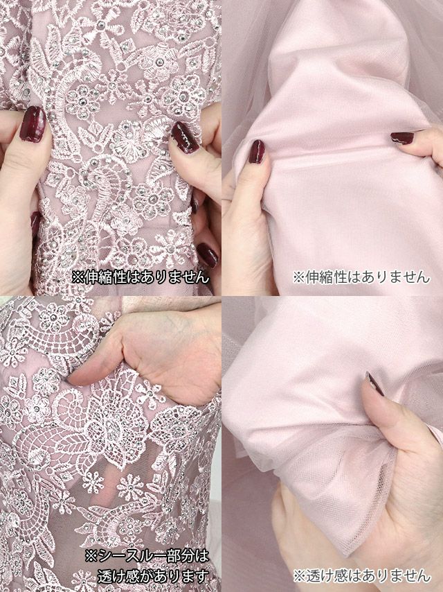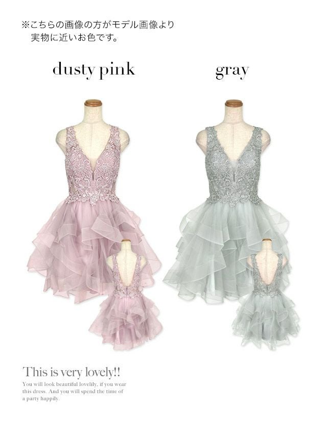 エアリー刺繍レース×ビジューふわふわチュールAラインミニドレスのカラーバリエーション