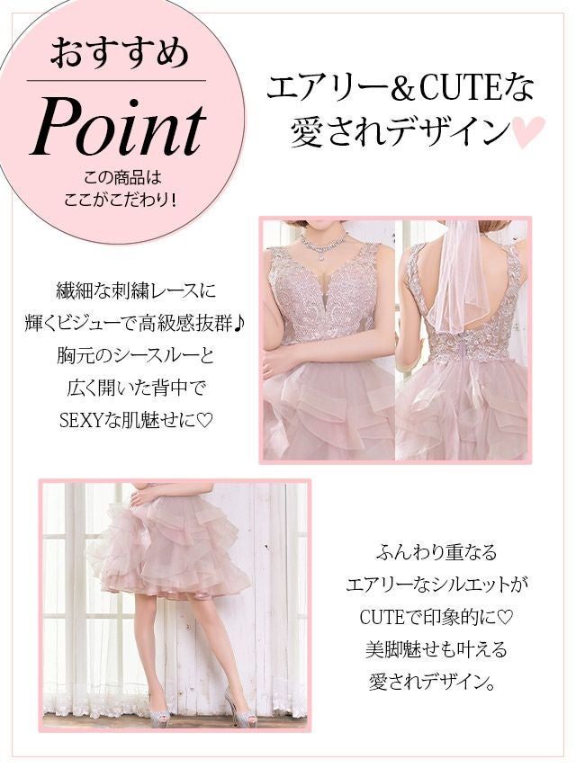 360度Cuteな愛されデザイン♪ [LA直輸入] エアリー刺繍レース×ビジューチュールAラインミニドレス (XSサイズ~Mサイズ) (明日花キララ/キャバドレス着用)