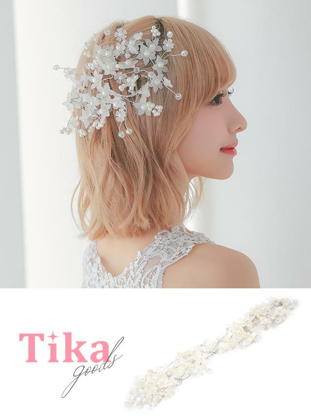 ヘッドドレスを付けるだけで髪が華やかになります!重くないので疲れないのもおすすめです!