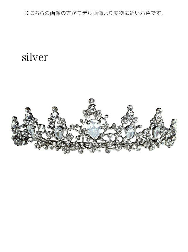 カラードレスにも合わせやすいシルバー1色ティアラです。