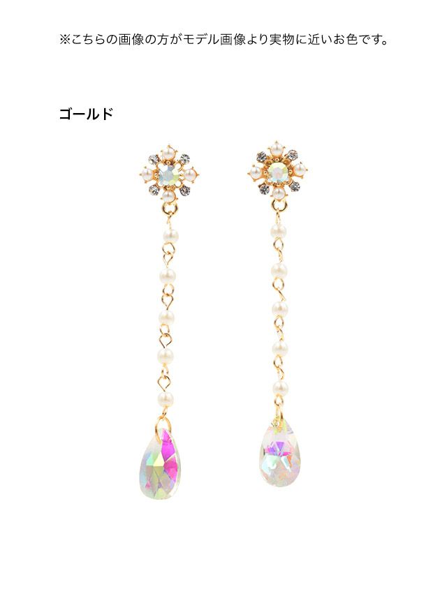 ロングピアスで顔を小さく見せる♪ キラキラビジューパールロングピアス
