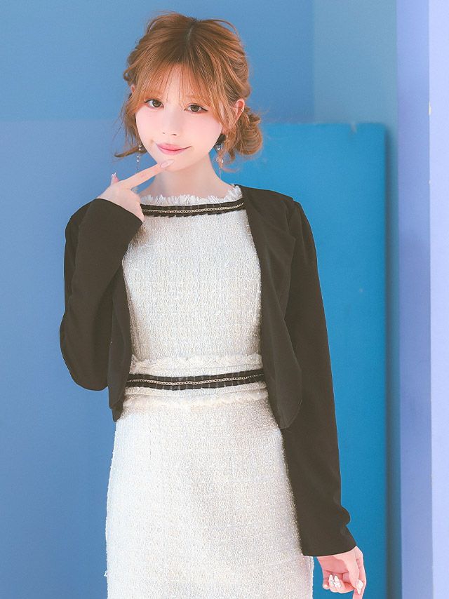 3. ボレロ ジャケット ノーカラー ショート丈 長袖 体型カバー 羽織り (若林萌々着用)
