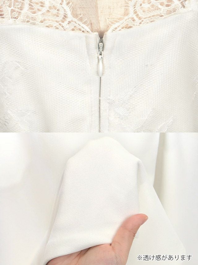 袖ありベルスリーブシアーレースウエストリボン切り替えストレッチラップタイトロングドレスの商品詳細1