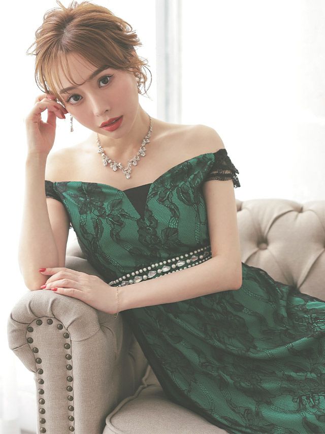 オフショルダー2Wayスリーブエレガントビジュー切り替え総レースAラインロングドレス (Sサイズ~XXLサイズ) (久保七瀬/キャバドレス着用)