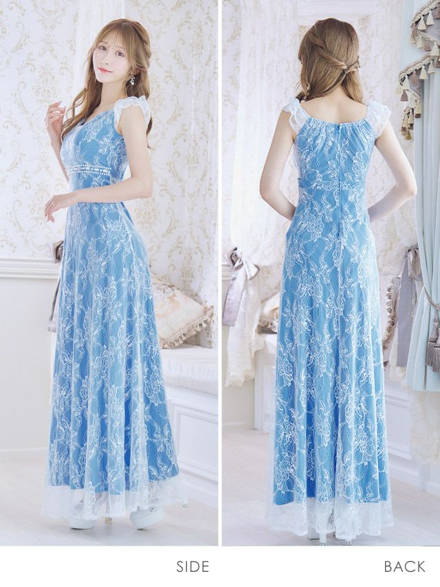 2WayオフショルダーウエストパールビジューラインオールレースAラインロングドレスの商品詳細1