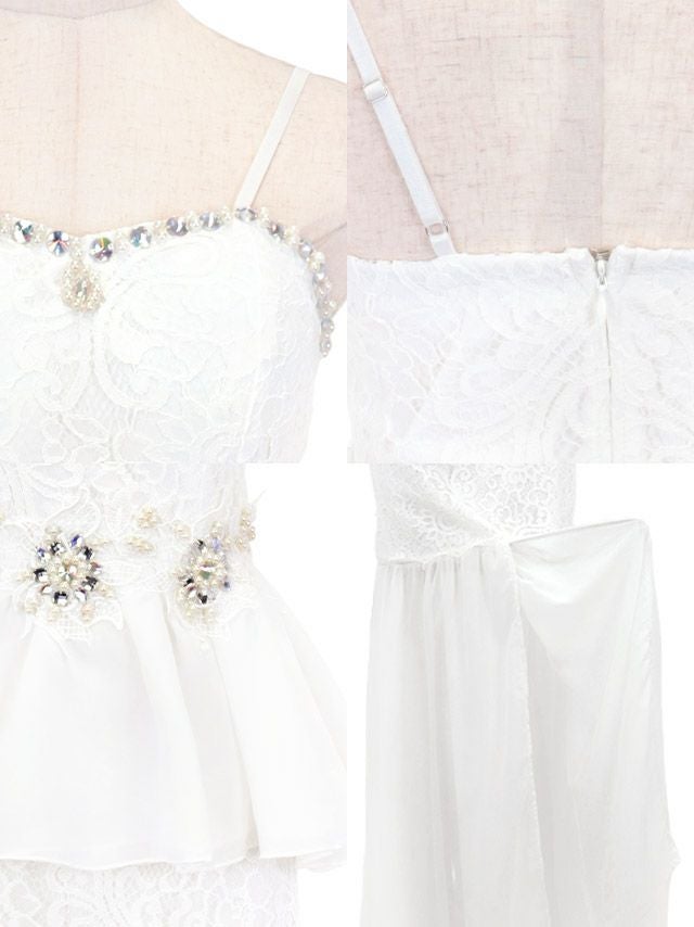 バストビジューレースペプラム切替シフォンスリットキャミソールタイトロングドレスのメイン画像