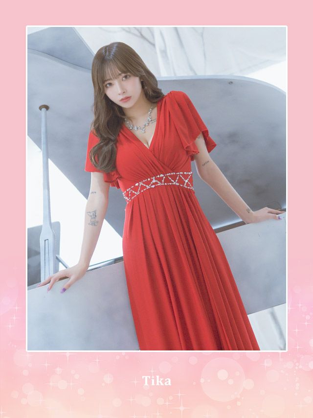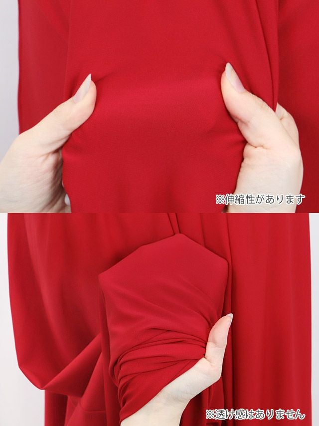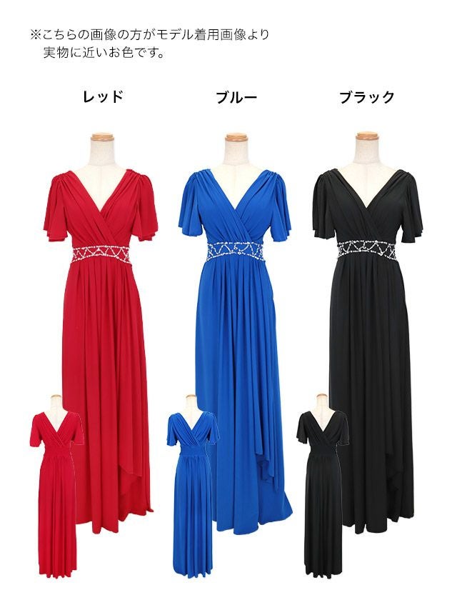 半袖カシュクールネックフリル袖ウエストビジューラインドレープクリスマスAラインロングドレスのカラーバリエーション