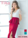 女性らしい美シルエットをメイク♪ ホワイトレースビジュー切替ペプラム半袖タイトロングドレス (Sサイズ~XXXLサイズ) (みゆう/キャバドレス着用)