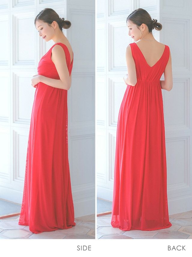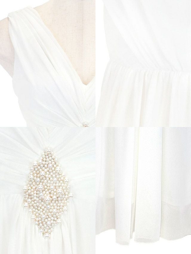 ノースリーブVネックウエストパールドレープAラインロングドレスの商品詳細1