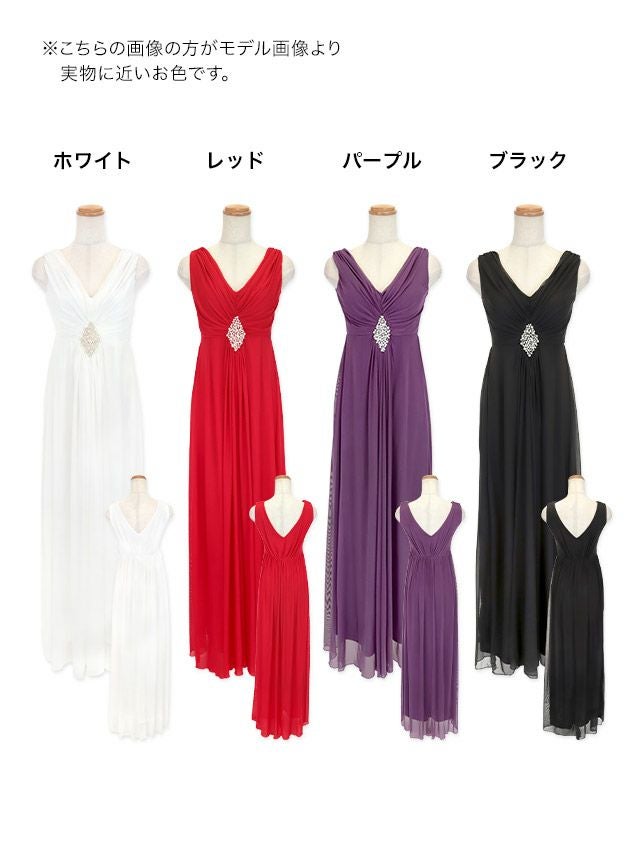 ノースリーブVネックウエストパールドレープAラインロングドレスのカラーバリエーション