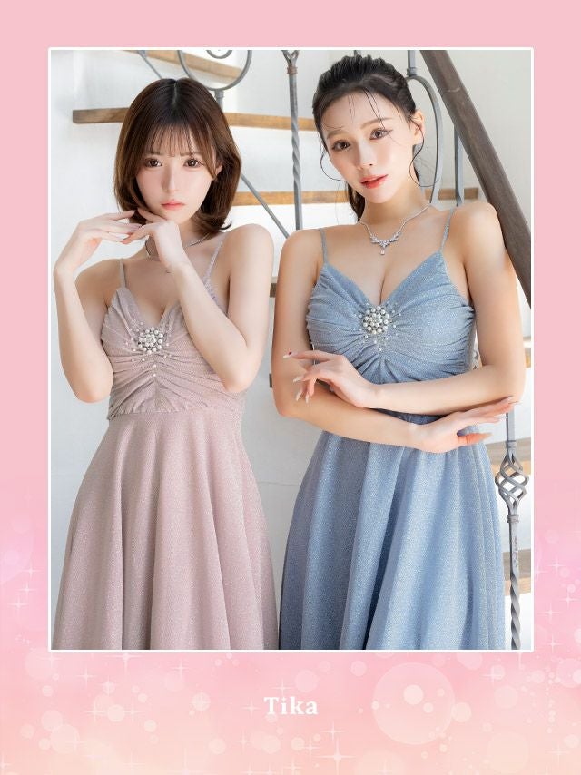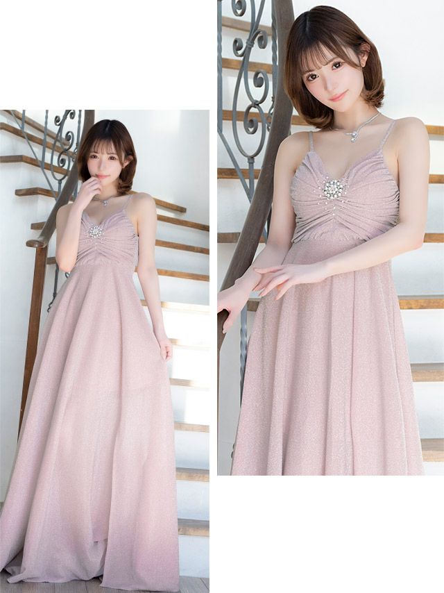 5. バースデー バストギャザービジューキャミソールキラキラグリッターラメAラインロングドレス (Sサイズ~XXXLサイズ) (聖菜/キャバドレス着用)