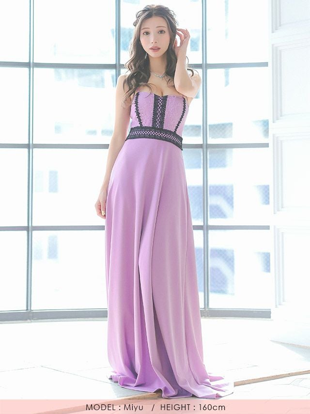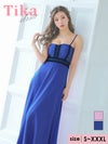 5. フラワーレースブラック刺繍切替キャミソールAラインロングドレス (Sサイズ~XXXLサイズ) (みゆう/キャバドレス着用)