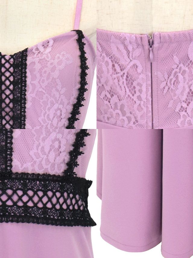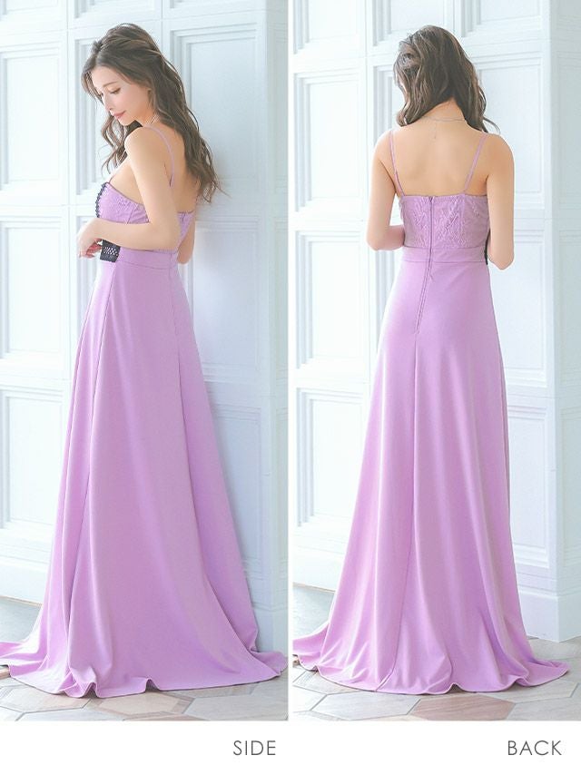 3. フラワーレースブラック刺繍切替キャミソールAラインロングドレス (Sサイズ~XXXLサイズ) (みゆう/キャバドレス着用)