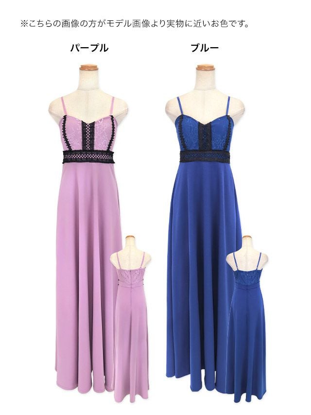 フラワーレースブラック刺繍切替キャミソールAラインロングドレスのカラーバリエーション