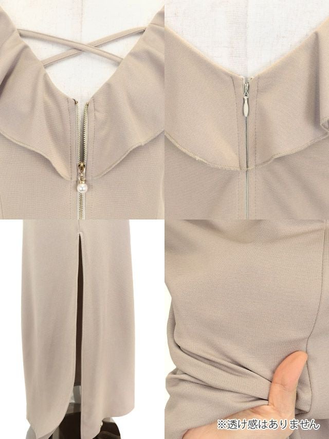 4. ロングドレス ペプラム タイト スリット ノースリーブ ストレッチ ジップ フリル袖 クロスネック ワンカラー ピンク 大きいサイズ キャバドレス (黒嵜菜々子着用) [tk-ld25918-h]