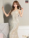 ビジューストリングデザインくびれシアー切替スパンコールキャミソールタイトロングドレスの商品特徴