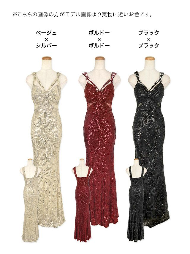 ビジューストリングデザインくびれシアー切替スパンコールキャミソールタイトロングドレスのカラーバリエーション