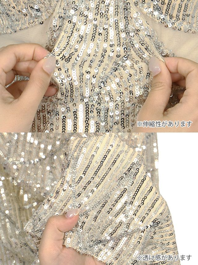 ビジューストリングデザインくびれシアー切替スパンコールキャミソールタイトロングドレスの商品詳細1