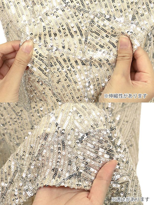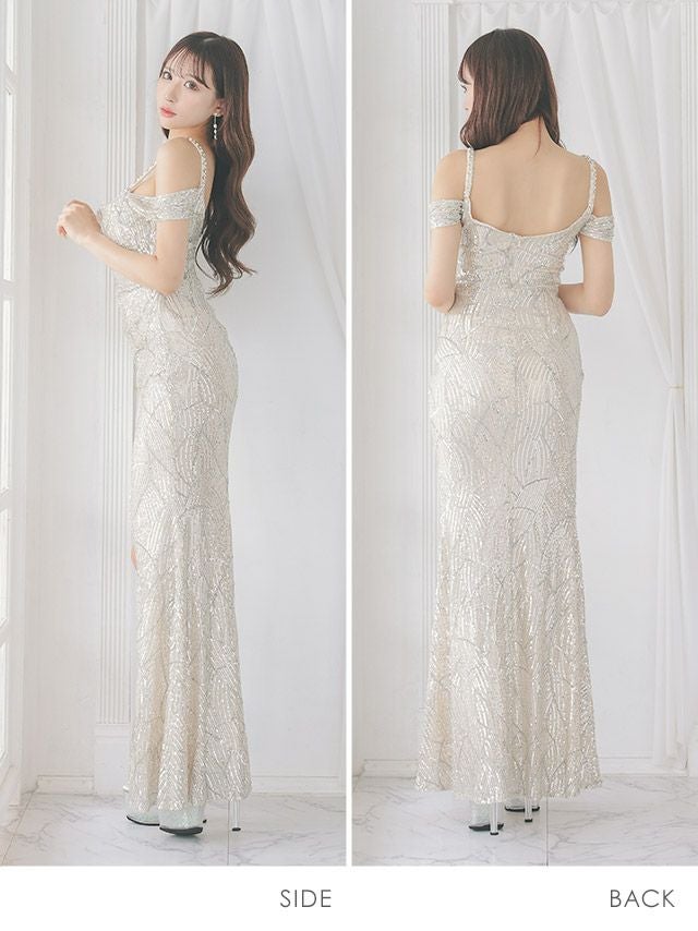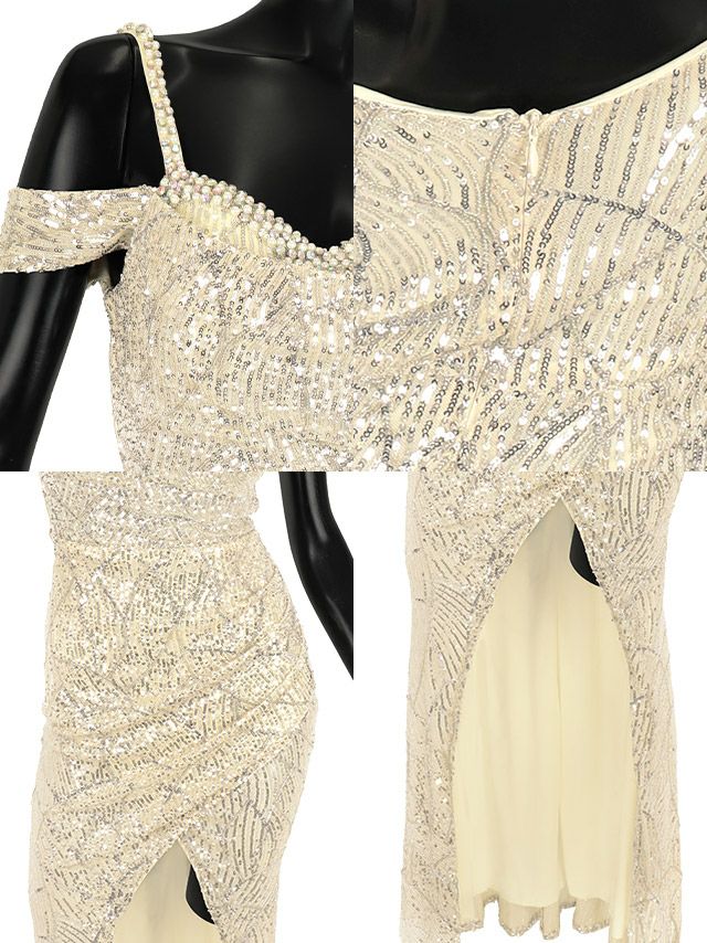 肩あきラップ風デザインスリットスパンコールタイトロングバースデードレスの商品詳細1