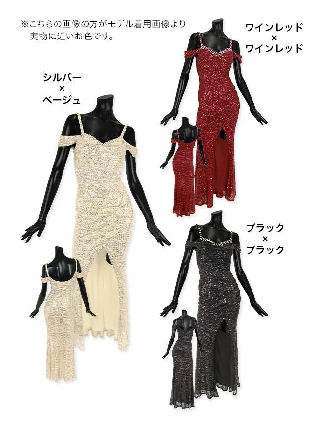 肩あきラップ風デザインスリットスパンコールタイトロングバースデードレスのカラーバリエーション