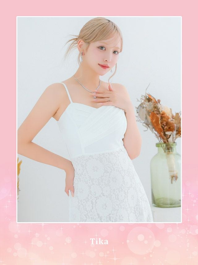 品のよさと可愛いさを演出♪ [SALE] バースデー キャミソールクロスギャザー切り替えクラシカルフラワーレースAラインロングドレス (Sサイズ~XXXLサイズ) (重川茉弥/キャバドレス着用)