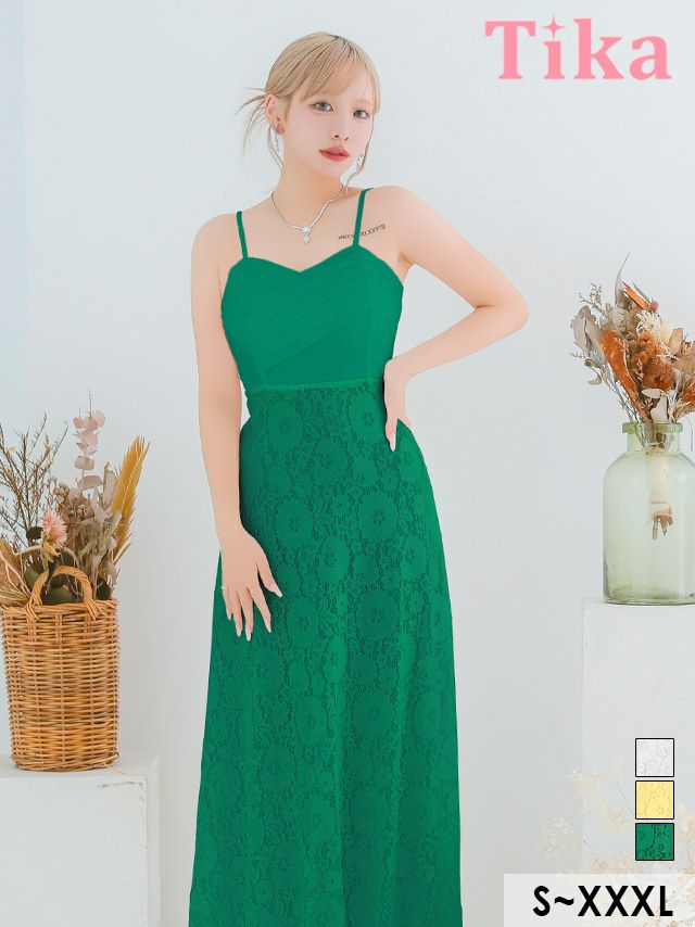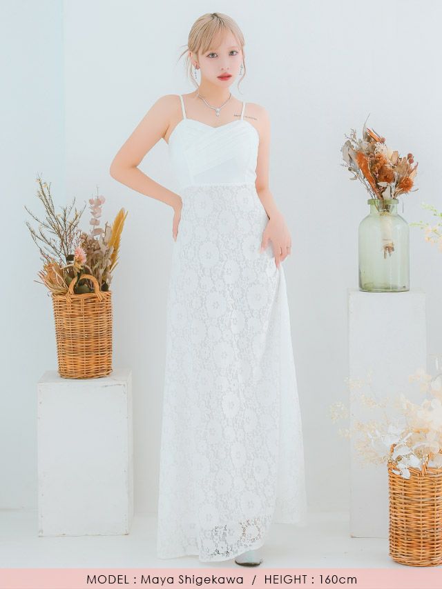 4. [SALE] バースデー キャミソールクロスギャザー切り替えクラシカルフラワーレースAラインロングドレス (Sサイズ~XXXLサイズ) (重川茉弥/キャバドレス着用)