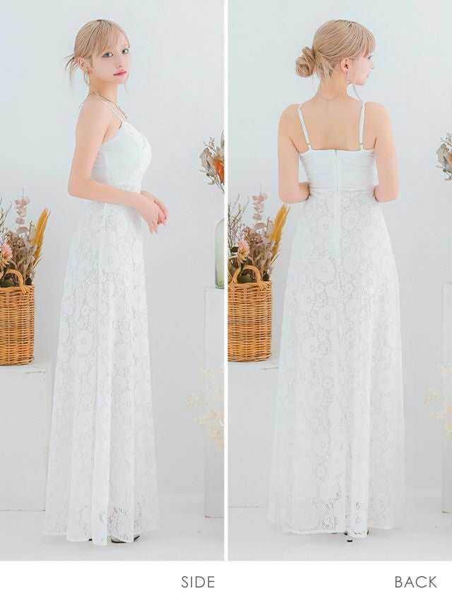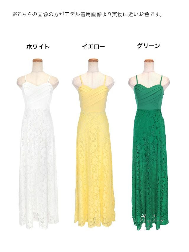 キャミソールクロスギャザー切り替えクラシカルフラワーレースAラインロングドレスのカラーバリエーション