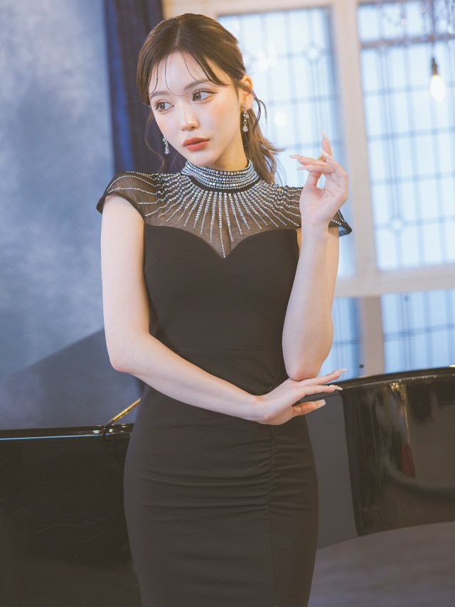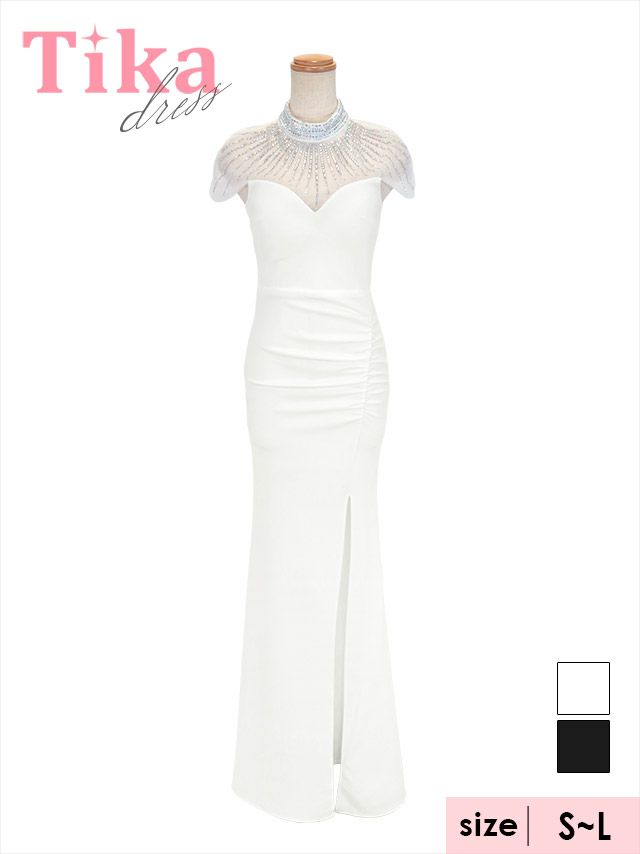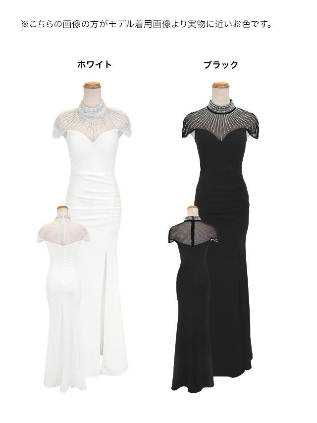デコルテシアービジューストーンギャザースリットタイトロングドレスのカラーバリエーション