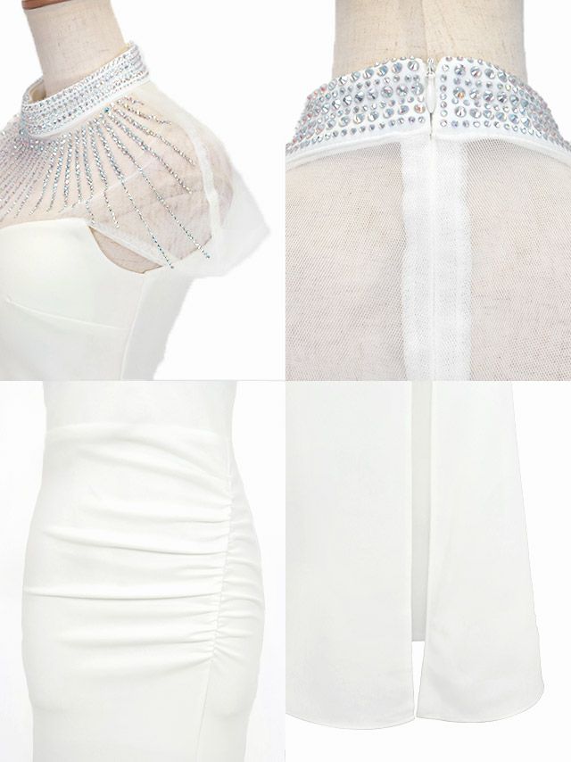 シアーなデコルテに豪華に飾ったキラキラなビジューストーンで