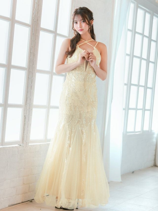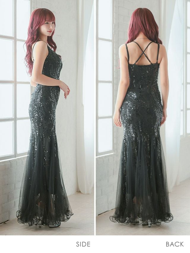 バースデー タイト ロングドレス 谷間 レース 大人 マーメイド キャミソール バストシースルー スパンコール キャバドレスの商品特徴1