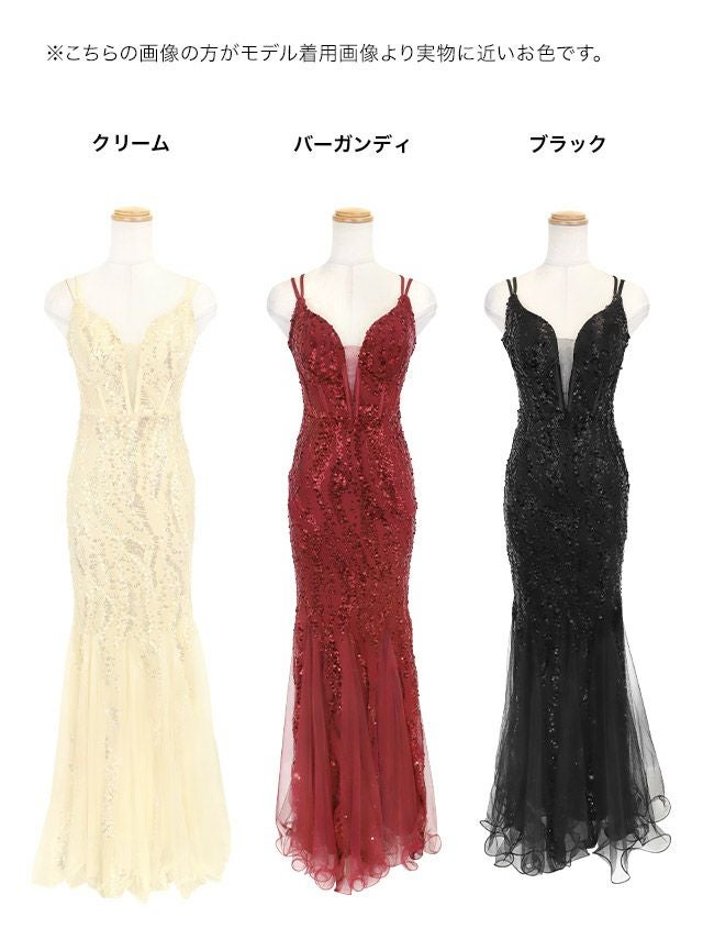 バースデー タイト ロングドレス 谷間 レース 大人 マーメイド キャミソール バストシースルー スパンコール キャバドレスのカラーバリエーション