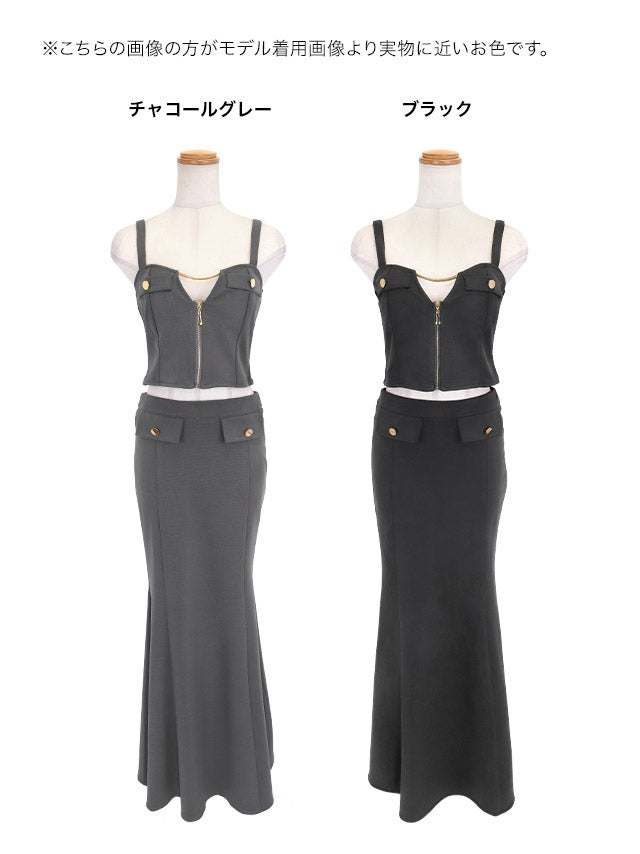 ロングドレス セットアップ ジップ キャミソール ストレッチ フェイクポケット マーメイド グレー XL XXL タイト キャバドレスのカラーバリエーション