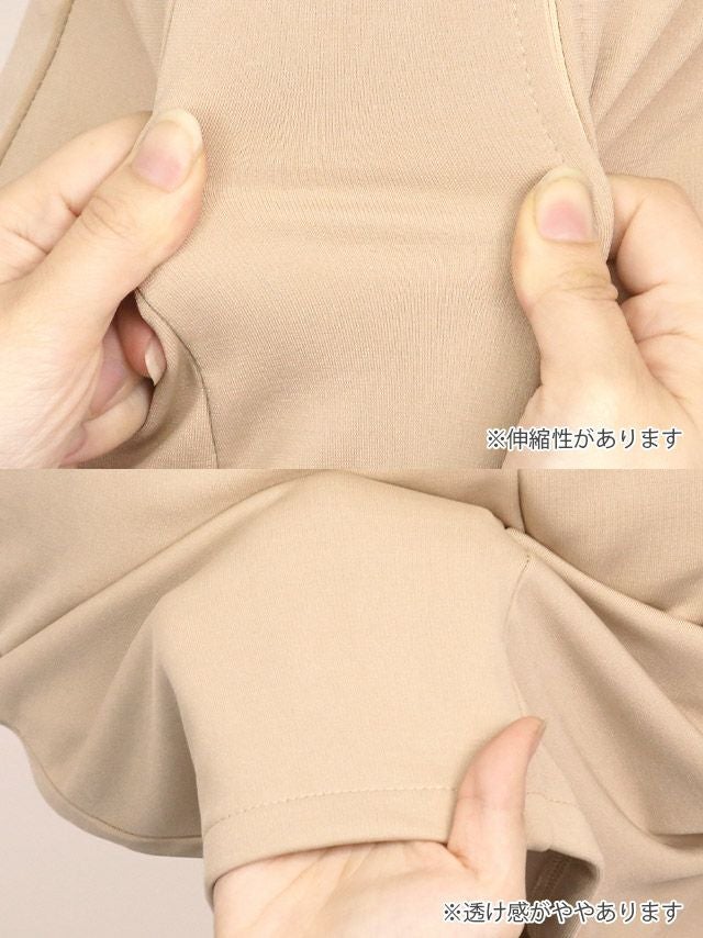 タイトシルエットながらも伸縮性のあるストレッチ生地なので