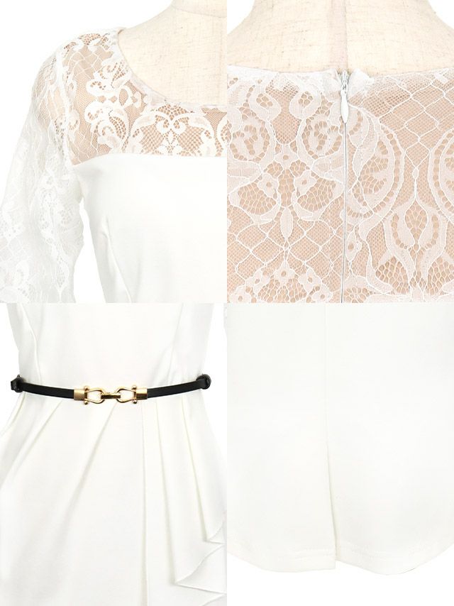 ベルト付き袖ありレース切替アシメペプラム風ワンカラータイトミニドレスのイメージ画像3