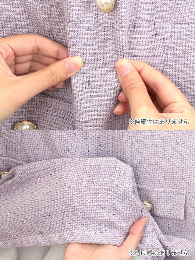 ス半袖レース襟デザインパールボタンツイードフレアミニドレスのイメージ画像2