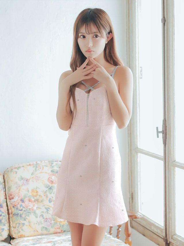 パステルカラーで女子力爆上げ♪ ミニドレス バストジップ ラメキャミソール ツイード Aライン キャバドレス (りせり着用) [tk-md10293a]