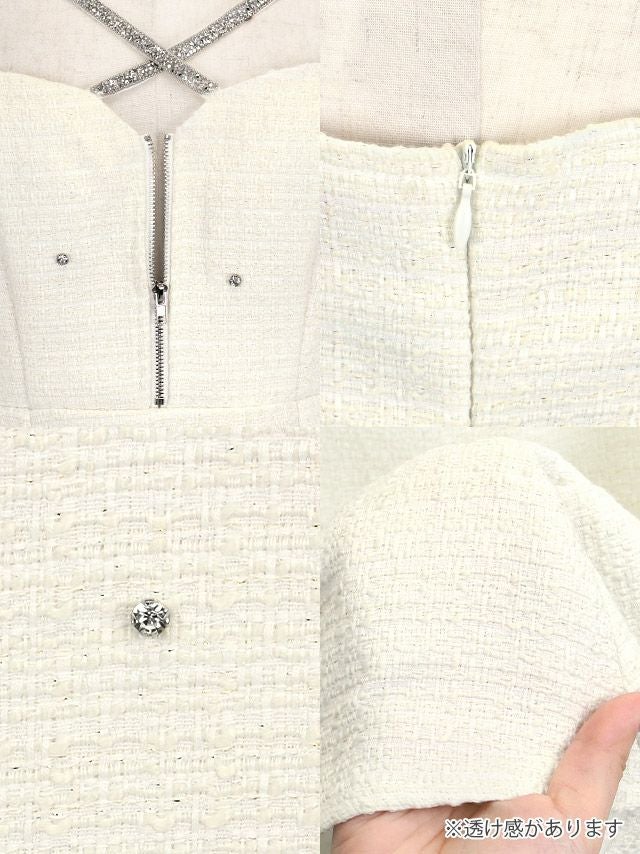 4. ミニドレス バストジップ ラメキャミソール ツイード Aライン キャバドレス (りせり着用) [tk-md10293a]